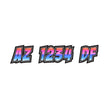 Letter prefix, 4 digit numbers, Letter suffix , 2 inch width in between each other,?e.g. CG 8649 AZ
